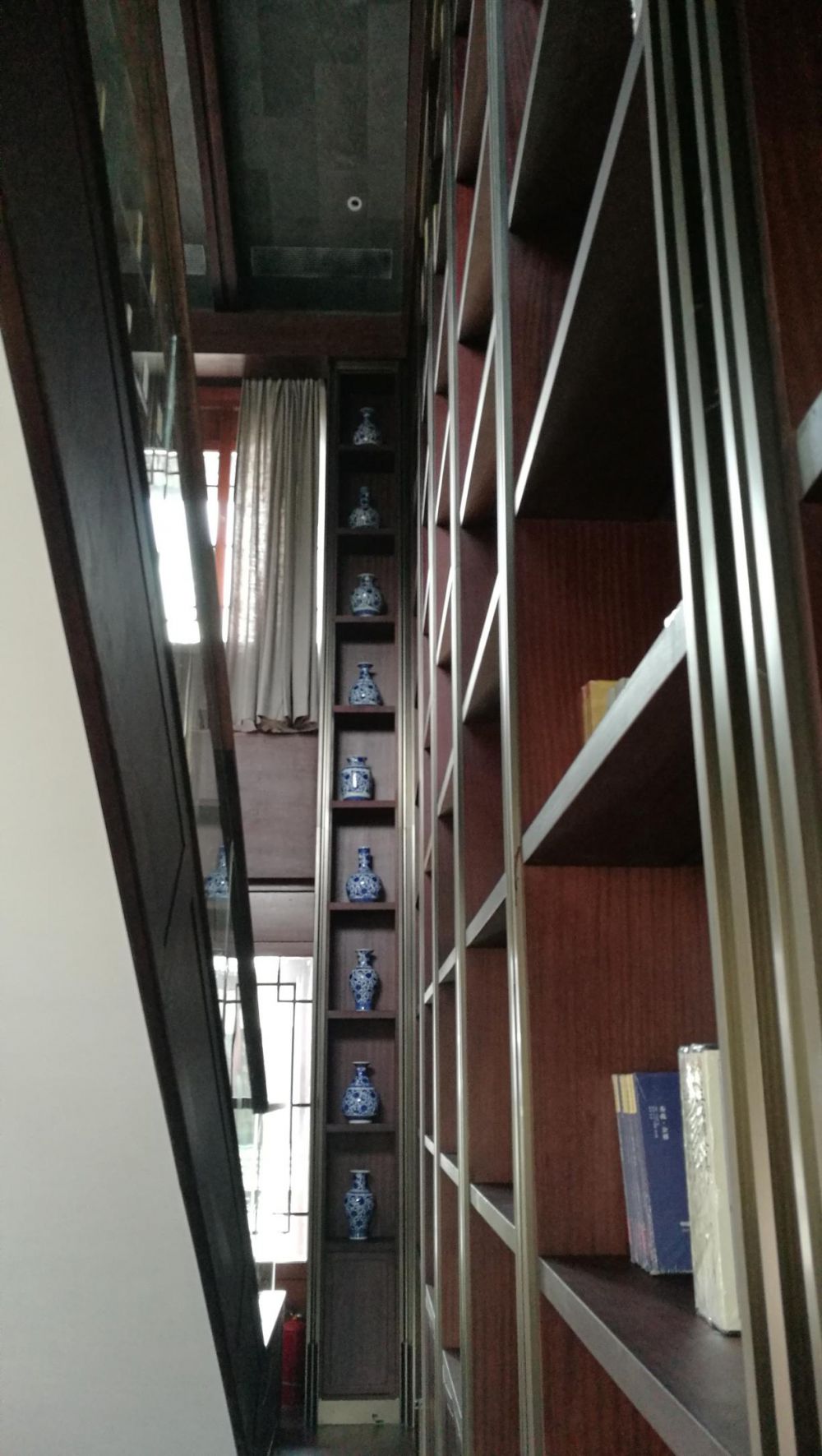 樓梯懸空從二層通高書柜穿越,徜徉其間墨香襲人。