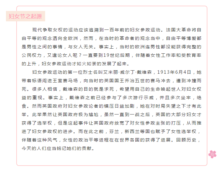 桃之夭夭,灼灼其華。在這春意盎然的日子里,我們迎來了一年一度女神專享的節(jié)日——“三八”國際勞動?jì)D女節(jié)。