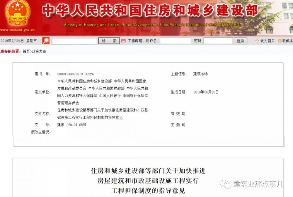 近日住建部、發(fā)改委、財(cái)政部、人社部、人民銀行、銀保監(jiān)會(huì)六部門聯(lián)合發(fā)布《加快推進(jìn)房屋建筑和市政基礎(chǔ)設(shè)施工程實(shí)行工程擔(dān)保制度》(建市【2019】68號(hào))明確提出: