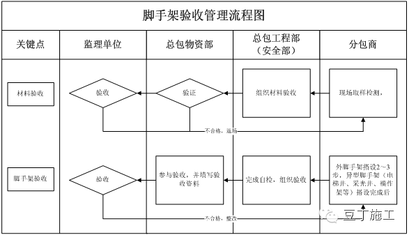 6、對于同一腳手架由多個施工單位共同使用時,總包方必須明確腳手架的管理單位;