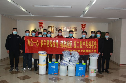 在疫情防控上,公司領導班子高度重視,成立銀建裝飾疫情應急處置工作小組、落實職責分工,下設隔離組、消殺組、防護用品保障組、宣傳維穩(wěn)工作組,各小組成員均由公司高管擔任,具體負責各項疫情防控工作。董事長葉友希表示:遇到困難不要怕,勇于去面對眼前的困難,拿出信心去戰(zhàn)勝它,對于企業(yè)來說危機也是另一種機遇,不平凡的時代一定會有不平凡的人涌現(xiàn)。在保障安全的基礎上,拿出勇氣和決心,攻克難關,創(chuàng)造新前景??偨浝砹河陆哟锌偣ㄔO工會、拱墅區(qū)住建局、古蕩街道等主管部門時也說道:公司復工井然有序,公司高層一致同意不急于人流匯集立即復工,要響應政府號召,分批復工,保障安全。
